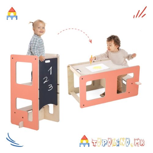 Дрвена Кула за Учење 2 во 1 Terra Cotta Pink – Mamatoyz