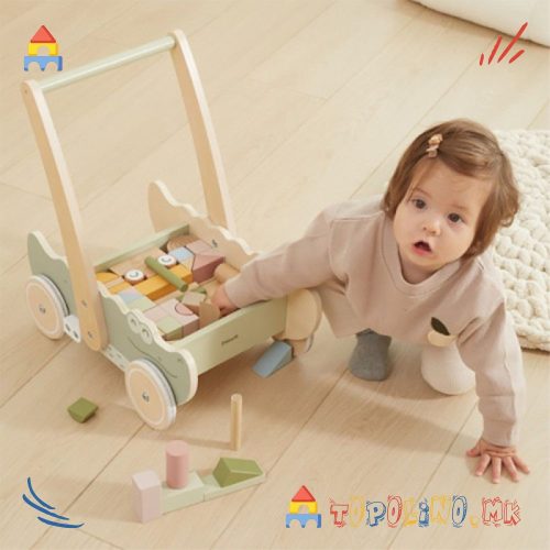• Дрвена Играчка Проодувалка и Количка со Коцки Крокодил - PolarB