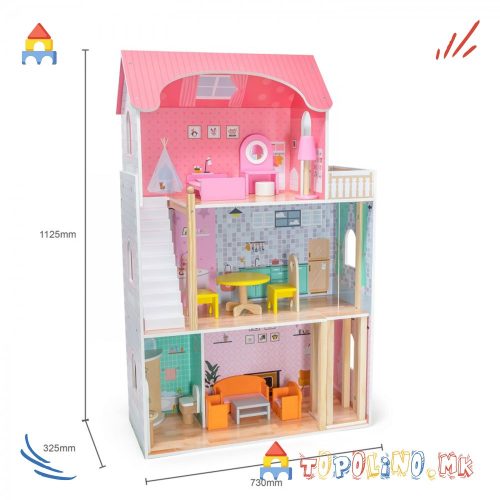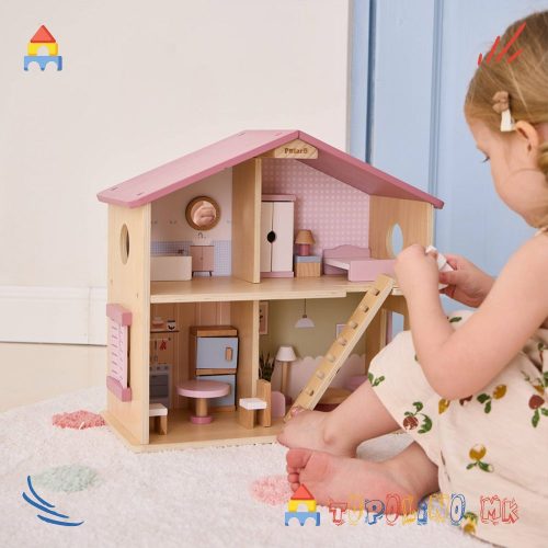 • Дрвена Куќичка за Кукли Doll House ( 9Пар. Мебел )  – Moni