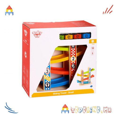 Дрвена Играчка Паркинг со Автомобили – Tooky Toy