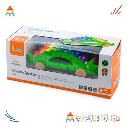 Дрвена Играчка за Влечење Ксилофон Крокодил – Viga