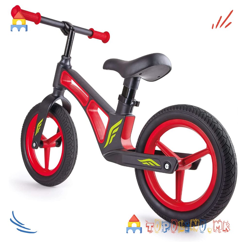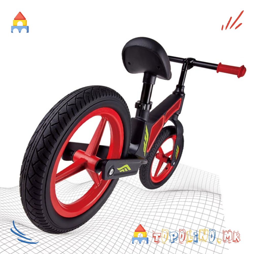 ● Рамот е направен од магнезиум, што го прави велосипедот издржлив и многу лесен (тежи само 3,5 кг.) и со вградена рачка за носење.