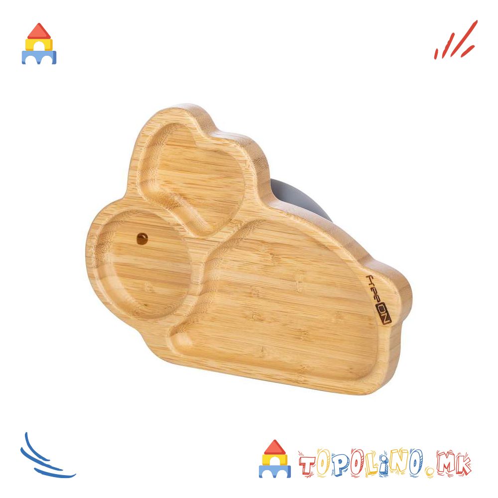 Тоа е она што го добивате со чинијата од бамбус FreeON, изработена во форма на слатки животни и привлечна за детето. Преградите на чинијата ви овозможуваат да ја одделите храната на чинијата.