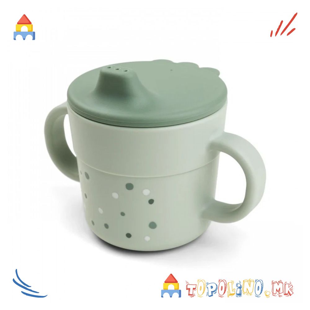 Foodie чашата со клунче е практична 2-в-1 придружничка за првите голтки. Капакот со клунче го намалува нередот, а кога детето ќе биде подготвено да ја користи без капак, двете рачки овозможуваат стабилен зафат.