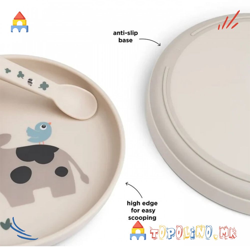 Практичната чинија е создадена да им помогне на најмалите за време на оброкот. Анти-лизгачката основа ја држи стабилно на масата, а високите рабови им овозможуваат лесно да ја соберат храната.