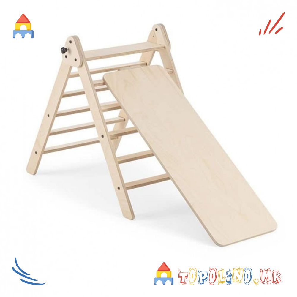 Дрвен Пиклер Триаголник, Лизгалка и Скали за Качување – Mamatoyz