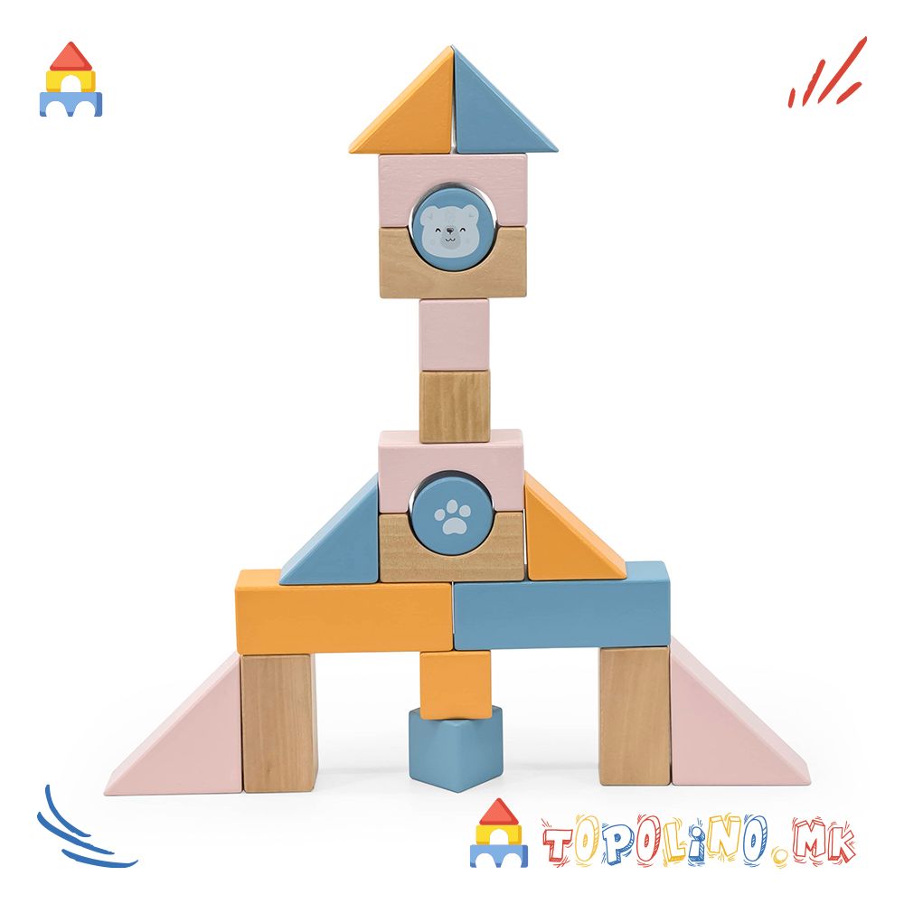 – Содржи 20 шарени дрвени коцки за редење и градење
