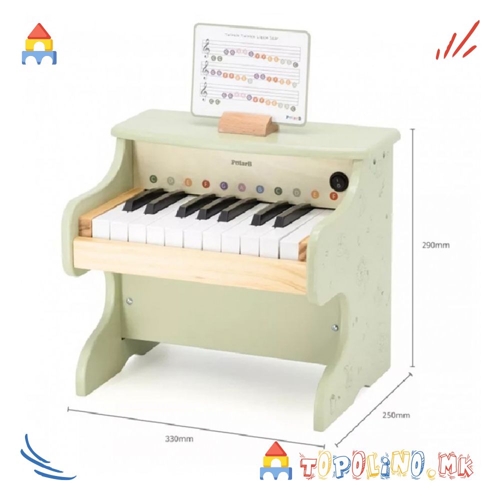 Ова прекрасно дрвено пијано од Viga PolarB е создадено за најмалите љубители на музиката. Со својот елегантен дизајн, безбедни материјали и инспиративна функција, пијаното ги воведува децата во светот на звуците и ритамот на еден игрив и безбеден начин.