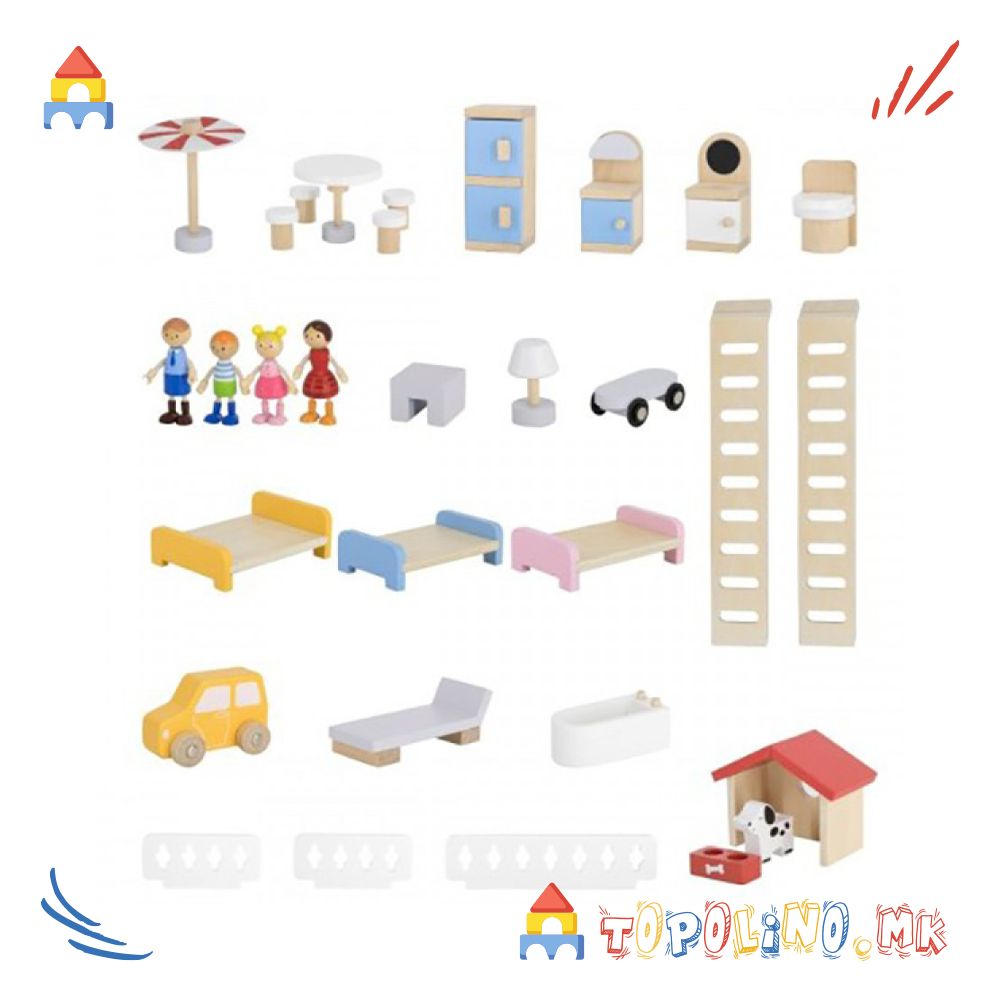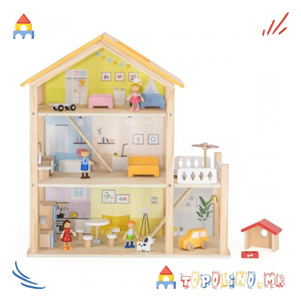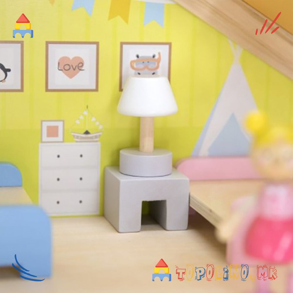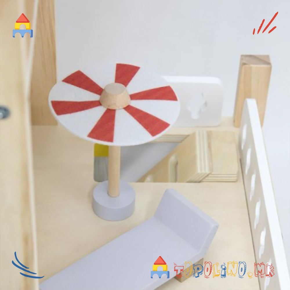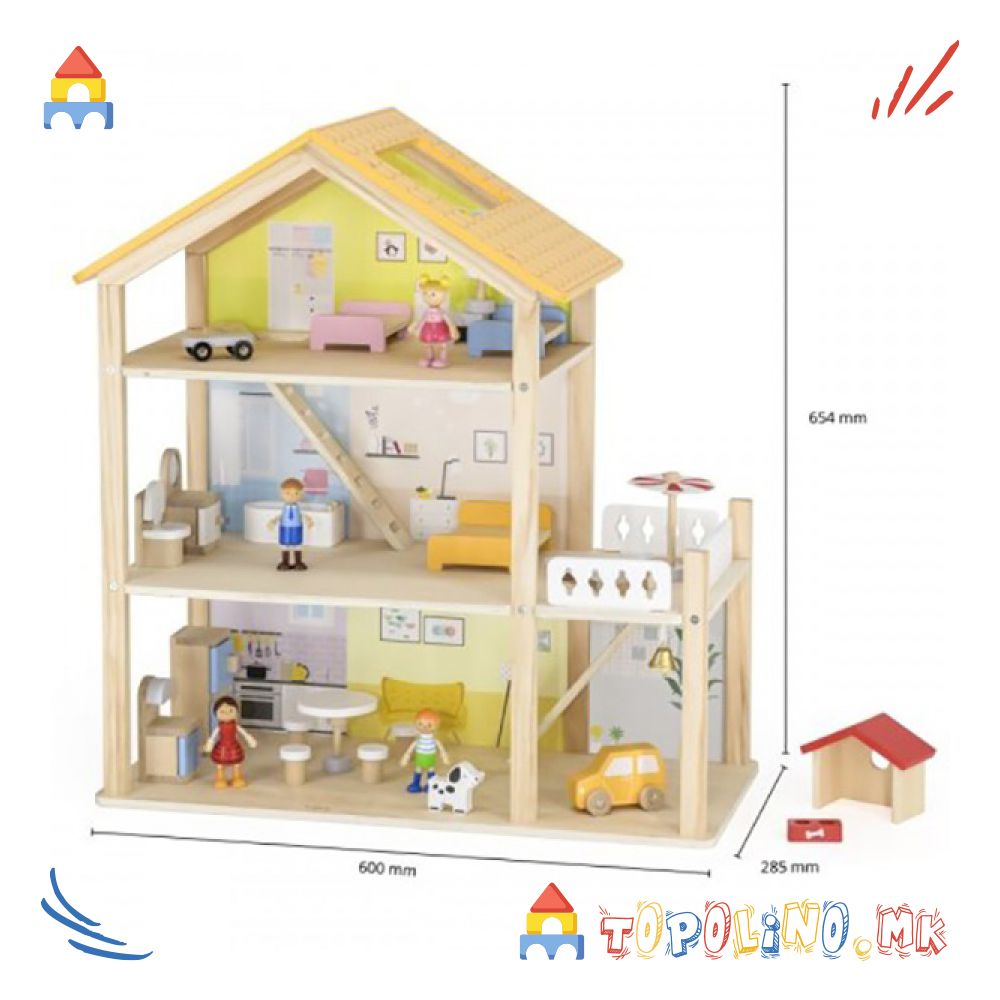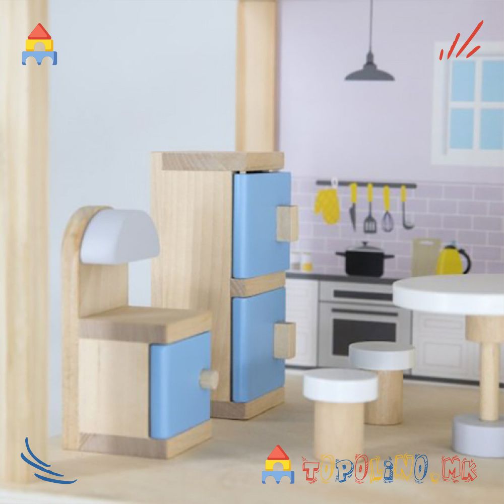Овој прекрасно дизајниран дрвен куклен дом од серијата PolarB на VIGA е идеален за деца над 3 години. Изработен од природни материјали и обоен во нежни пастелни нијанси, домот нуди целосно опремени простории и богат сет додатоци за креативна, социјална и имагинативна игра.