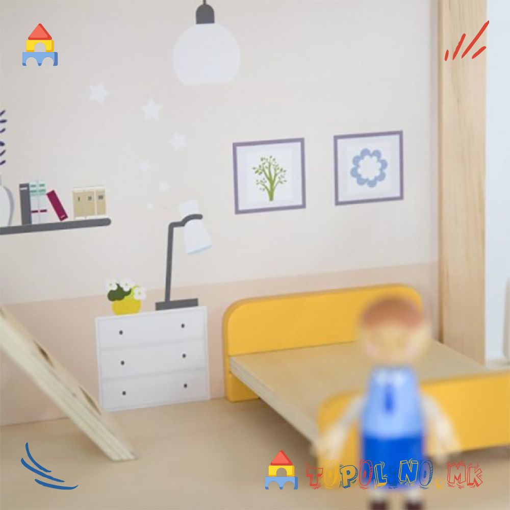 – Детска соба со две креветчиња, масичка, ноќна ламба и шкафче