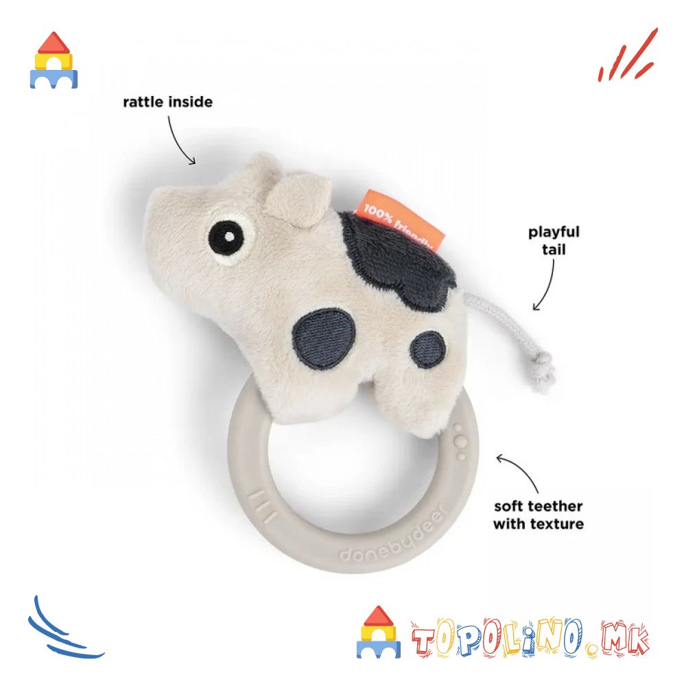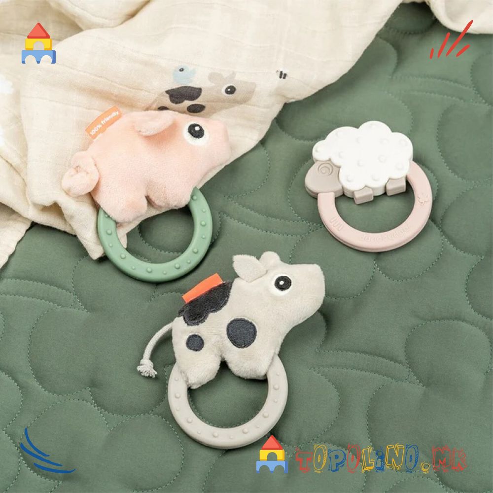 Оваа играчка е идеален придружник за сензорното истражување и потребите при никнување на забчињата.