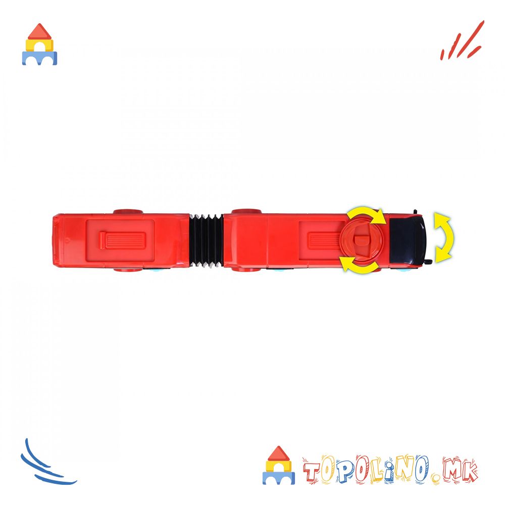 • „Ве молиме сите во автобусот!“ – Одете на возбудливо патување со овој градски автобус полн со карактеристики! Гумениот зглобен дизајн гарантира дека автобусот може ефикасно да маневрира низ сообраќајот, исто како и оригиналниот!