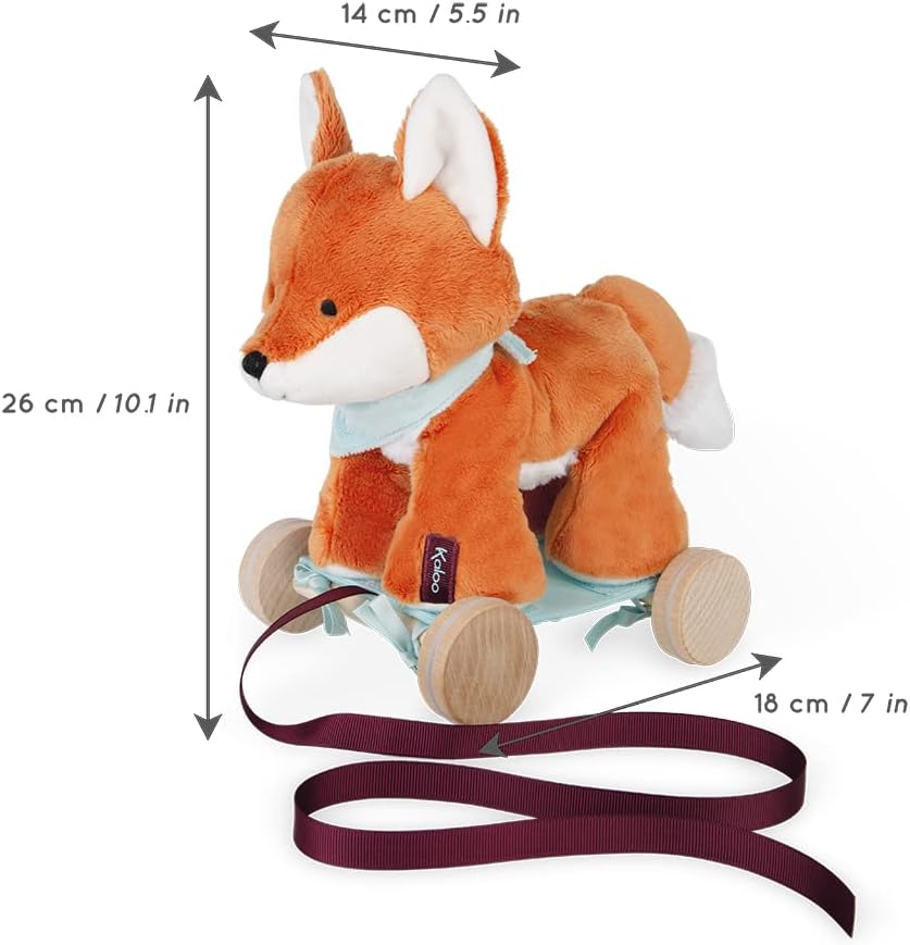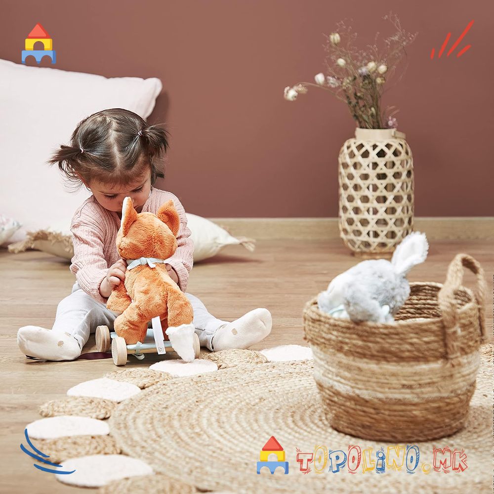 Едукативна играчка за трчање и гушкање – Лисицата Пеперс може да го следи вашето дете насекаде благодарение на своите 4 дрвени тркала и конецот за влечење, со малото ѕвонче кое е скриено во неговата глава. Со своите живи бои и малата палава насмевка, таа е апсолутно симпатична. Совршена за развој на моторните вештини и имагинацијата на вашето дете од раѓање. Исто така, идеален придружник за гушкање: вашето дете може да ужива ставајќи ја на својата даска со дрвени тркала и соблекувајќи ја по желба.