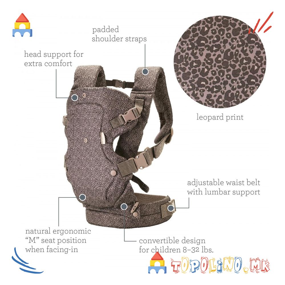 Уникатното, конвертибилно седиште на Infantino Flip 4-во-1 за бебиња го прави овај производ идеален носач за новороденчиња и мали деца.