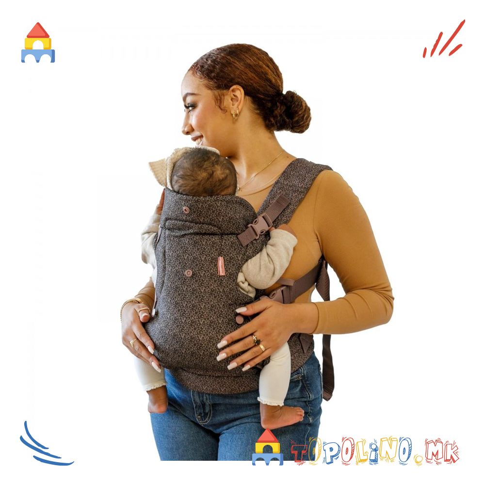 – ДИЗАЈН 4-во-1: Носилка за бебиња со прилагодливо ергономско седиште, ремени за рамо и ремен за половината за да се префрли тежината на колковите на корисникот за поудобно носење.