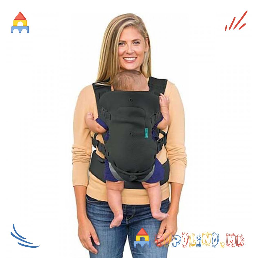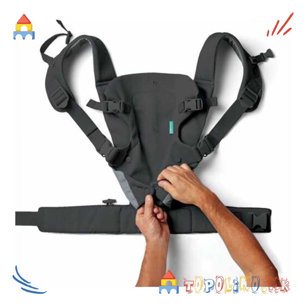 Носилката е прилагодлива за оптимална удобност и за бебето и за родителот. Потпорниот појас, наслонот за глава, ергономското седиште и обложените ремени за рамо се внимателно дизајнирани да одговараат на различни телесни типови и стилови на живот — правејќи ја оваа носилка сигурен, практичен и модерен избор. Не е ни чудо што Infantino Flip 4-во-1 е најпродаваната носилка во Америка — практична, достапна, одобрена од родители. Зачинете го вашиот стил на носење бебе со новата Flip 4-во-1 носилка!