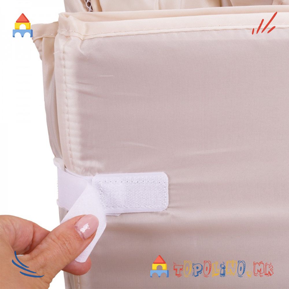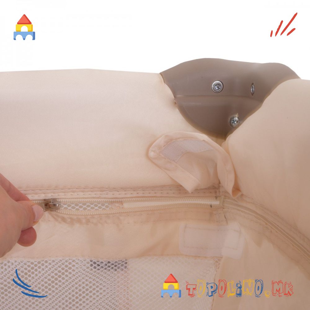 – Горните рабови на креветчето се обложени за да се спречи повреда, а страничните делови се изработени од мрежа, што овозможува циркулација на воздух и постојан визуелен контакт со детето.