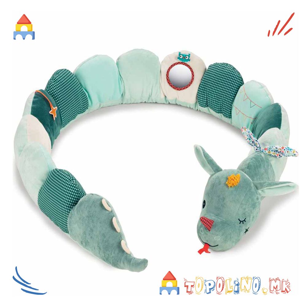 Сите елементи се совршено изработени, со внимание на деталите и се целосно безбедни за децата. Оваа играчка развива фини моторни вештини (фаќање, тресење), го активира слухот (тропање, шушкање), видот (огледало) и допирот (различни материјали со различни текстури, бројни испакнати делови), а истовремено го поттикнува движењето и му дава слобода на детето.