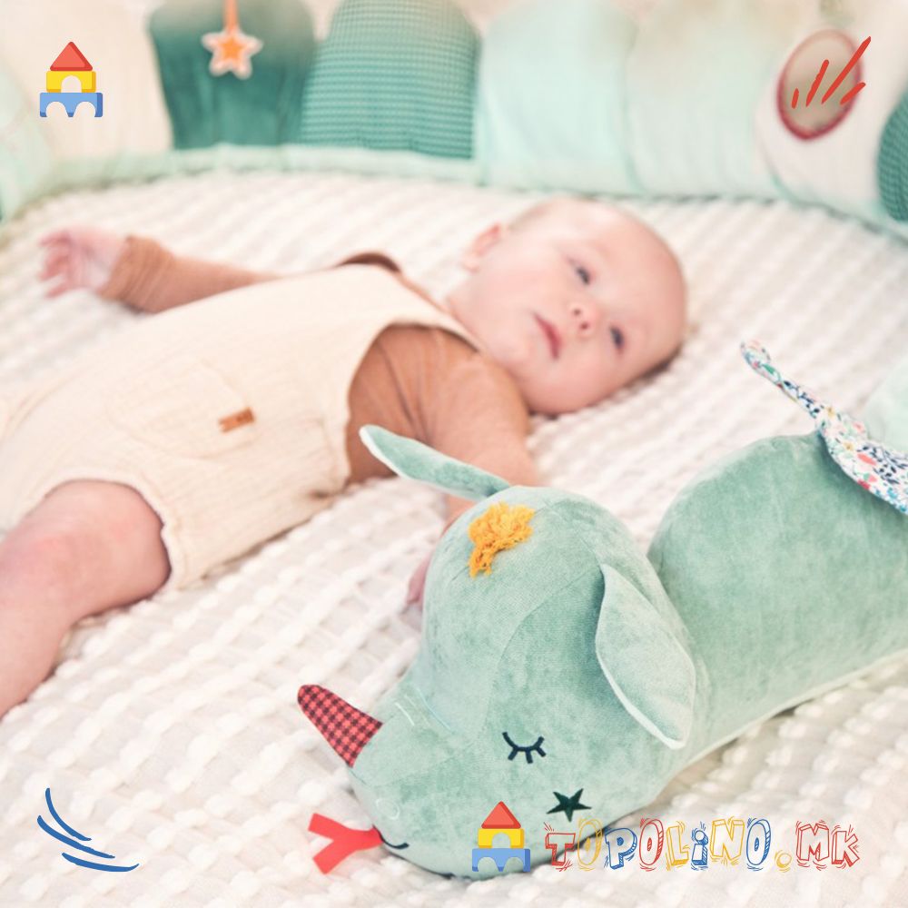 Меката ограда со активности Joe е оригинална, мултифункционална, привлечна и поддржувачка играчка за развој за бебиња. Исто така, има практична функција – штити од ѕидовите на креветчето и создава мек простор околу бебето (може да се користи и за време на играње на подот).