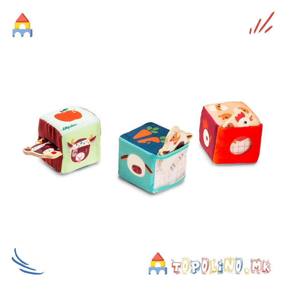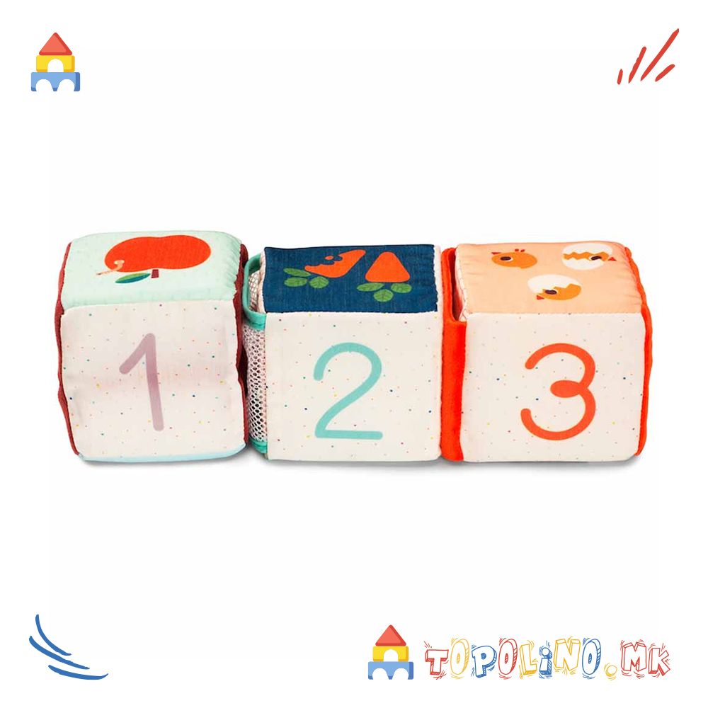 Комплетот меки коцки е оригинална, мека и интерактивна играчка за учење.