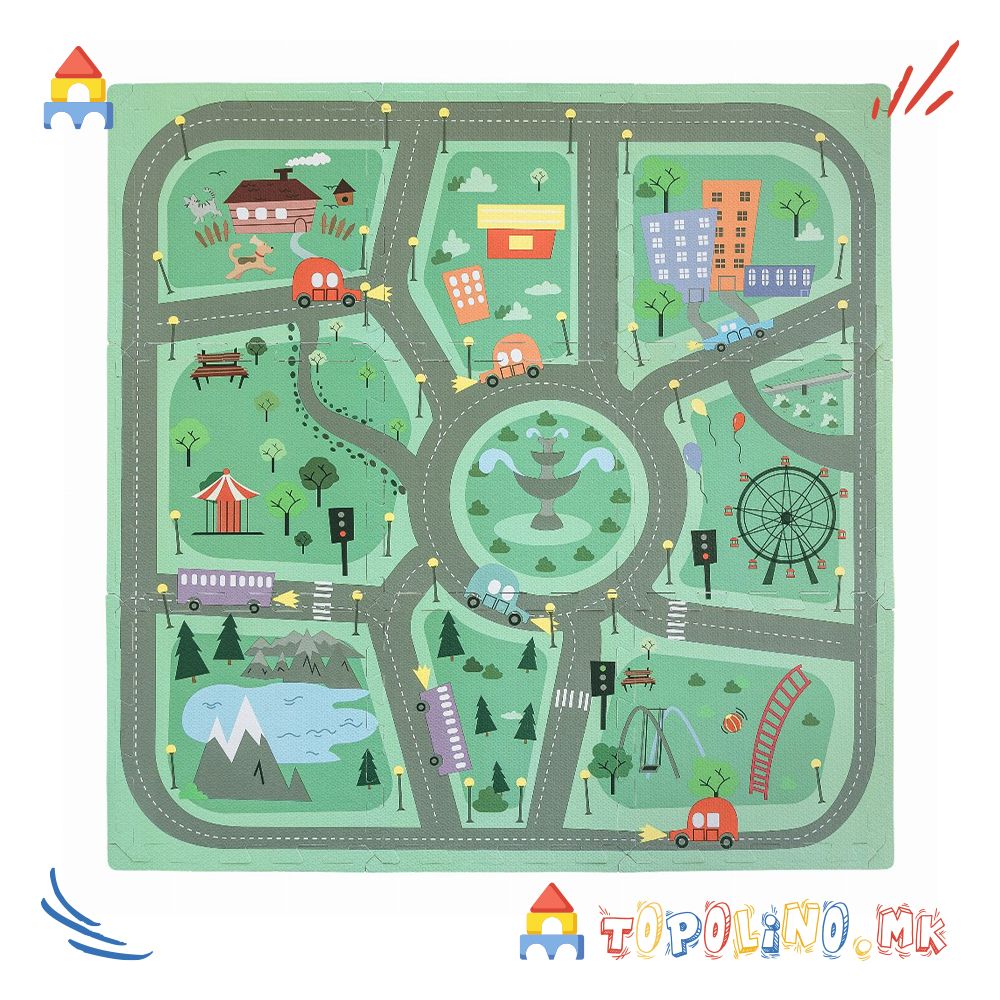 Практична и удобна подлога од пена составена од 9 меѓусебно поврзани парчиња од сложувалка кои можат да се распоредат на кој било начин што сакате. Дизајнирана за мали деца да си играат, да лежат и да ги прават своите први чекори. Неутралниот дизајн со висок контраст ја прави совршен декоративен елемент во секоја просторија. Изработени од пена, парчињата од сложувалката се безбедни и без штетни супстанции. Дополнително, тие се лесни за одржување и чистење.