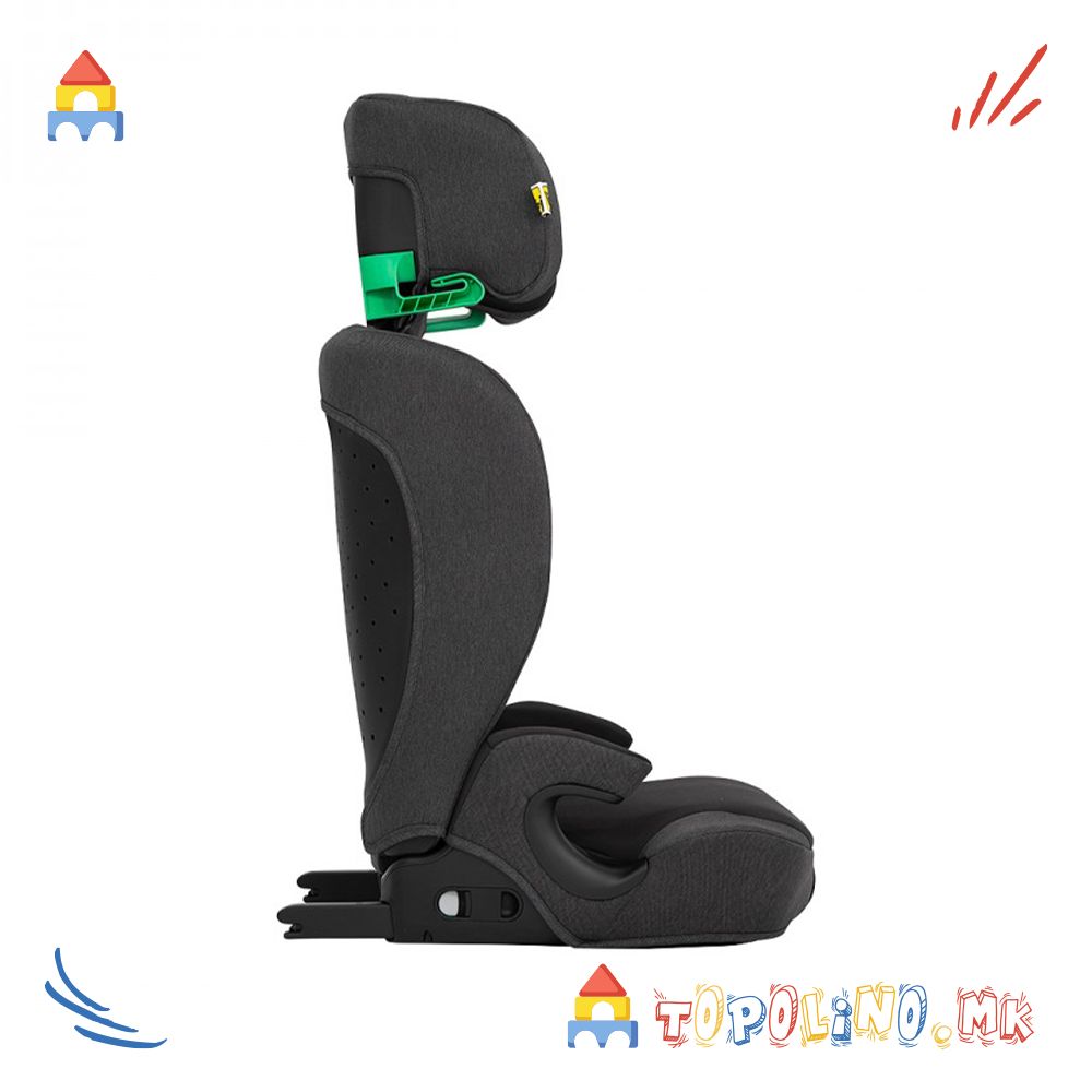 Ова седиште свртено во насока на движење нуди сигурност и удобност додека вашето дете расте – од мало дете до предтинејџерска возраст. Во периодот од 76 до 105 cm (од 15 месеци до приближно 4 години), се користи режимот со внатрешен појас-harness booster. ISOFIX конекторите и горниот ремен го држат седиштето цврсто на место, без потреба од користење на безбедносниот појас на возилото. Појасот со 5 точки на врзување обезбедува детето секогаш да биде правилно и безбедно позиционирано.