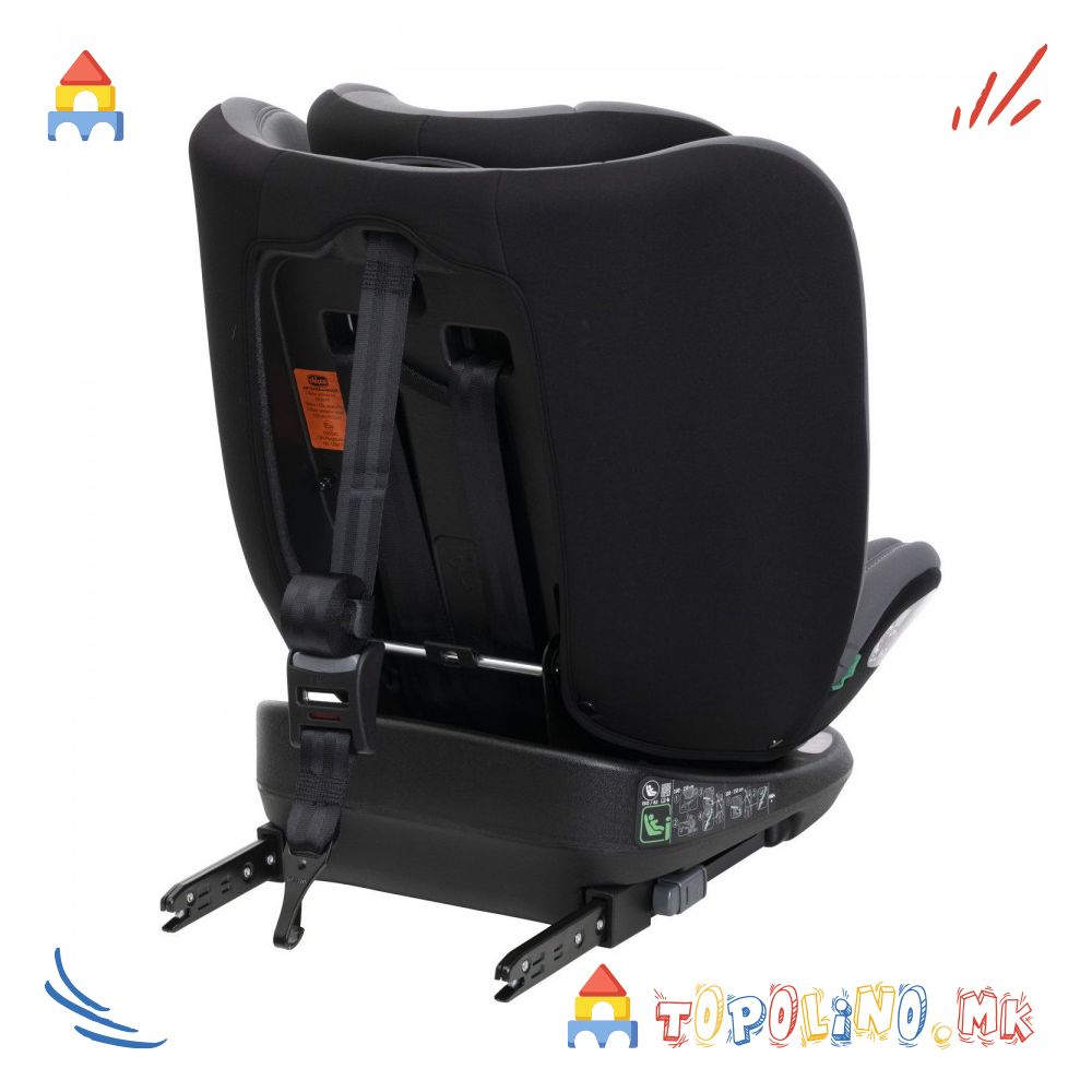 Седиштето мора да се постави свртено во правец на движењето на автомобилот со помош на конекторите Isofix и Top Tether (Isofix System).