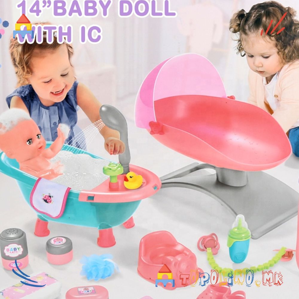 Сетот содржи бебе, хранилка, креветче када, нокшир , цуцла, шишенце, пудра, пелена, луфа, сапун, кондурки.