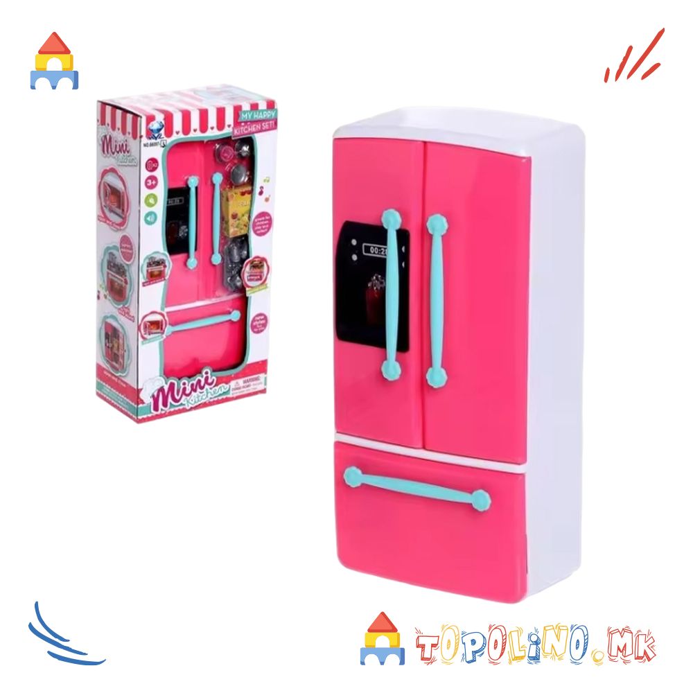 Фрижидерот има звучни и светлосни ефекти. Отворете го и наредете го со потребните намирници. Потребни се 2 ААА батерии кои не се вклучени во сетот. Соодветно за деца над 3 години.