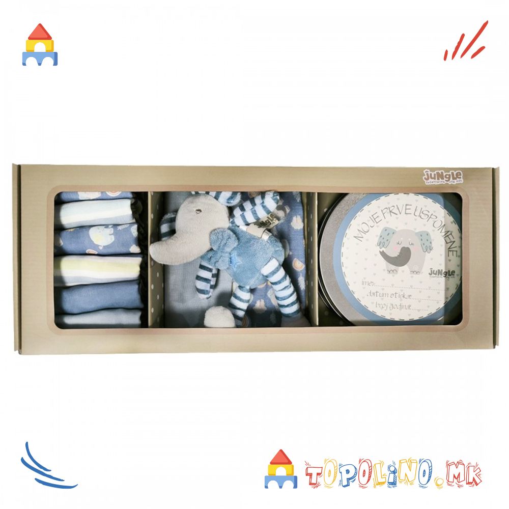 Сет за Бебе First Print Син Слон – Jungle