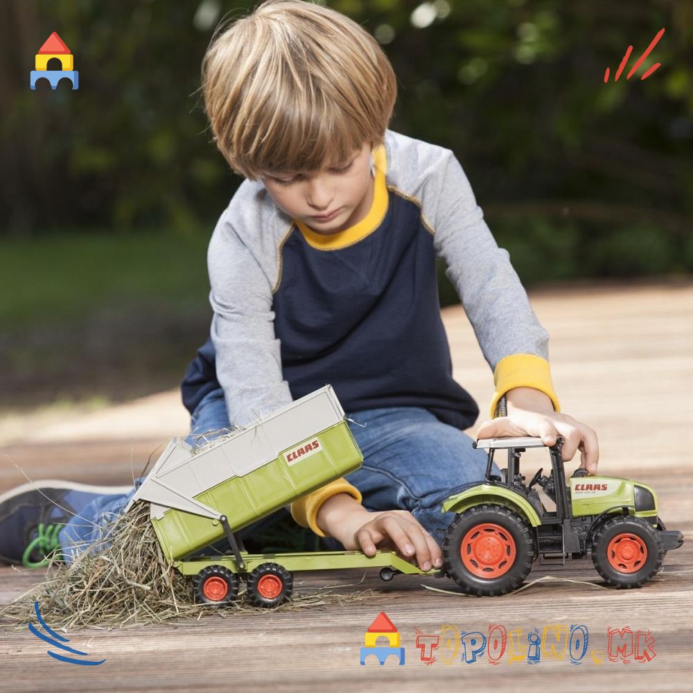 Тракторот со Приколка на Dickie Toys им помага на амбициозните земјоделци да започнат одлична игра во нивната соба. Тракторот е верно моделиран според дизајнот на Claas. Подвижните делови нудат многу простор за игра, а во исто време ги поттикнуваат моторните вештини на љубителите на овие машини. Приколката го прави товарењето и истоварувањето брзо и лесно, исто како и обичните работи на фарма.