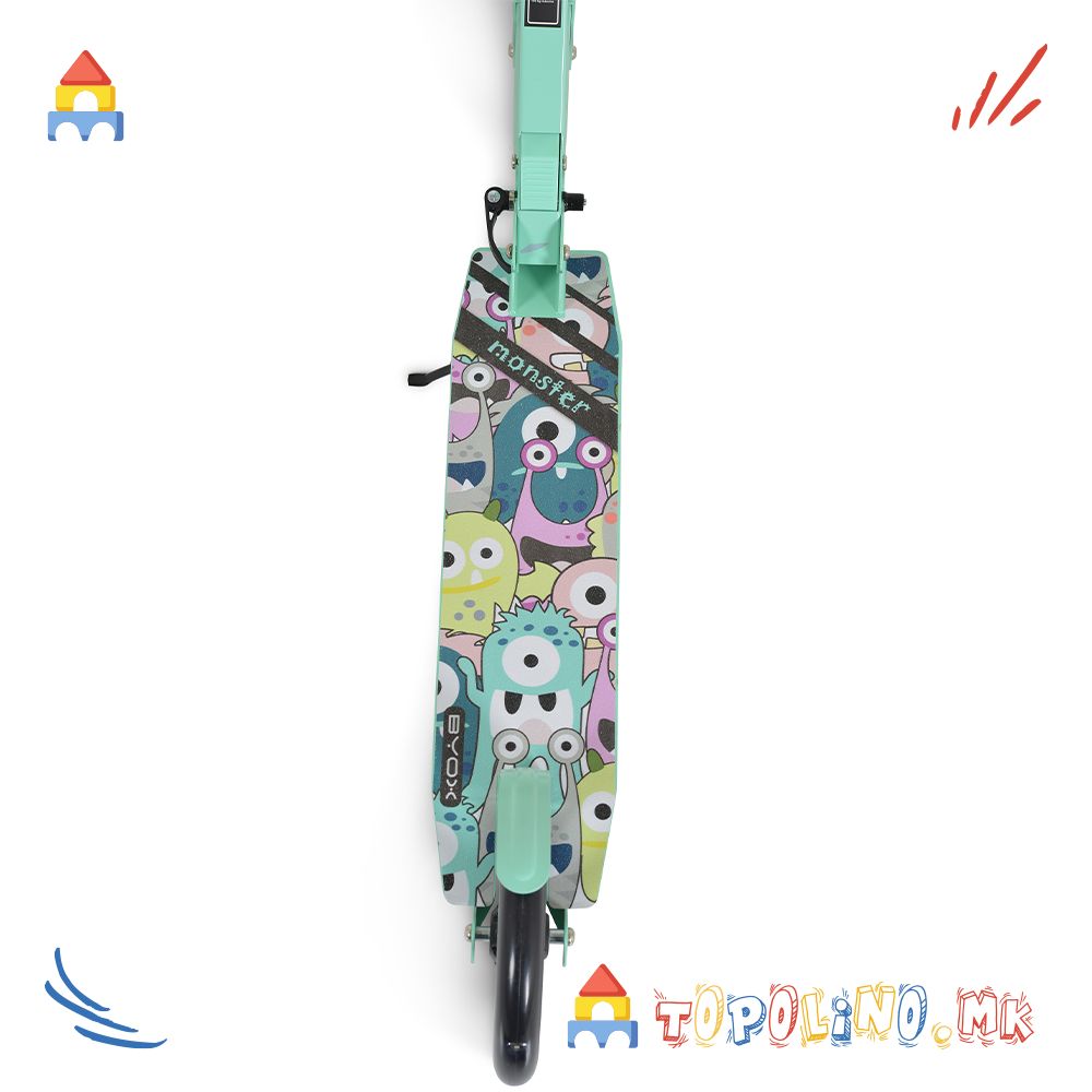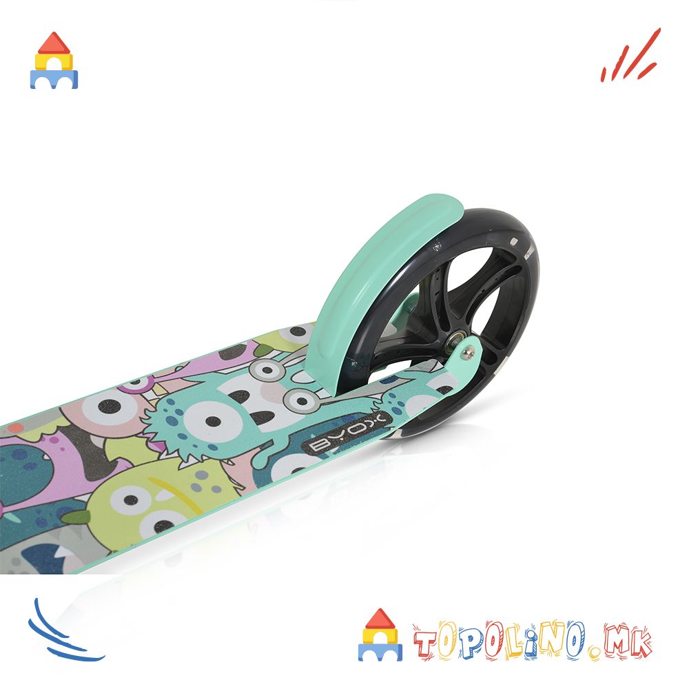 Тротинет Monster, Byox – стабилност, удобност и забава со секое возење. Погоден за деца над 6 години и со максимално оптоварување до 100 кг. Дизајниран за активно движење, слобода и забава.