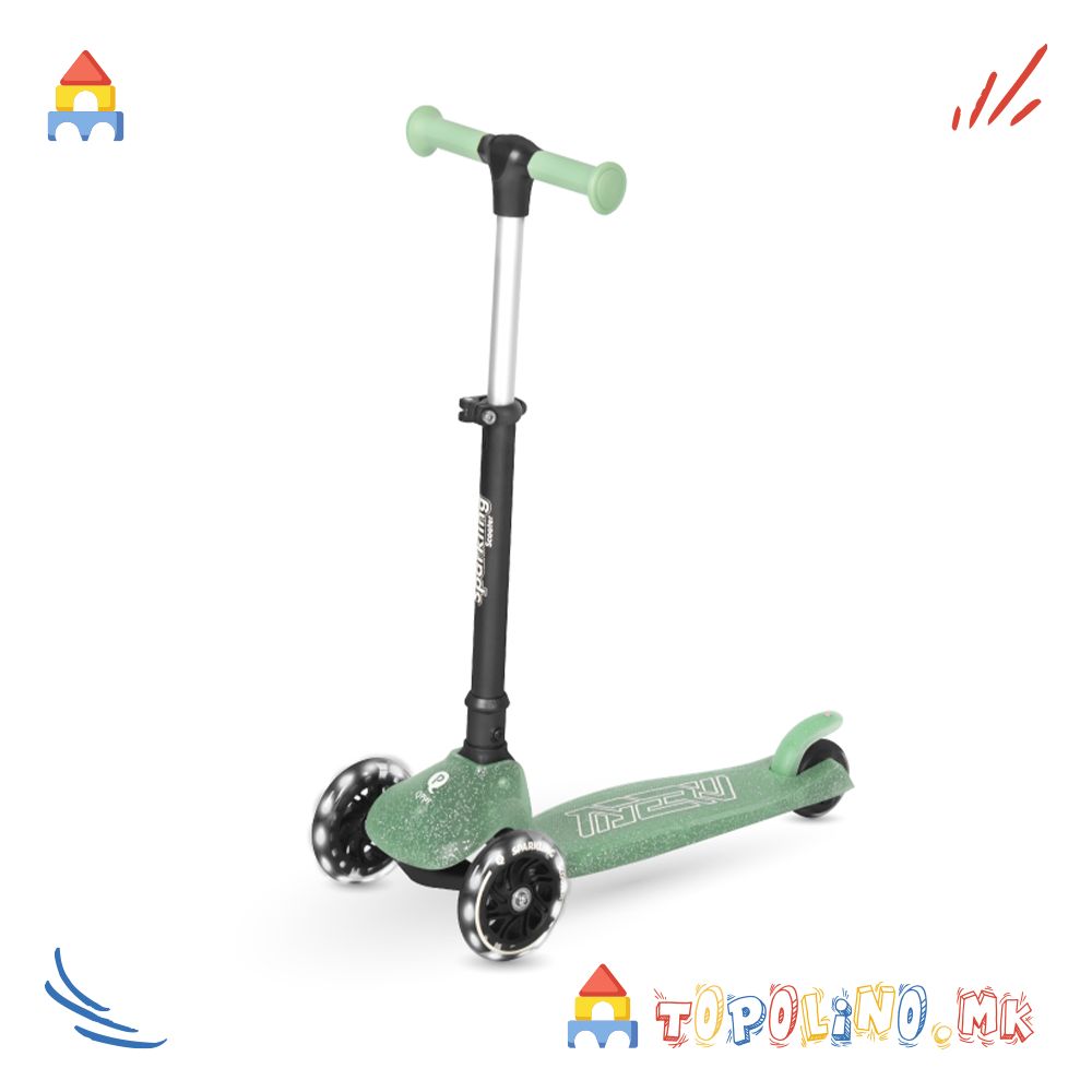 QPlay Sparkling е модерен детски тротинет со три тркала и LED светла што светат при движење, создавајќи забавна и безбедна атмосфера за секое дете. Лесниот и стабилен дизајн овозможува сигурно возење, а прилагодливата рачка расте заедно со детето.
