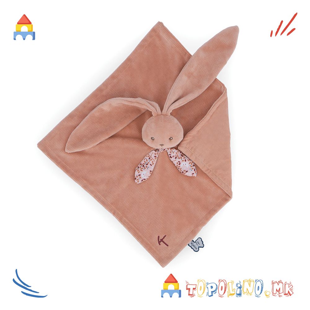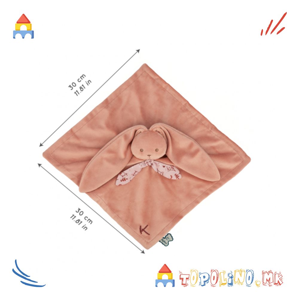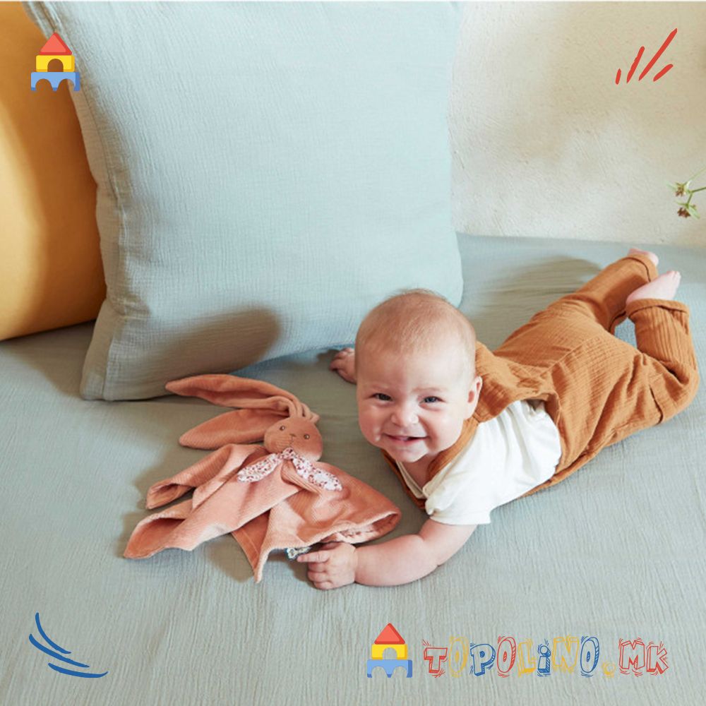 Меко и нежно зајче, подготвено за игра со бебето! Ова зајче ќе го воодушеви целото семејство, ќе биде секојдневна удобност за бебето. Погодна од раѓање, оваа кремаста утешителка има долги уши што малите ќе сакаат да ги допираат, гушкаат… Лесна е за фаќање и носи мала марама што одговара на бојата на неговото тело. Лапино ќе биде придружник на бебето, секогаш подготвена да го утеши и да го обвитка во нежност. Спакувано во убава кутија за подарок што е полна со љубов. Може да се пере во машина за перење.