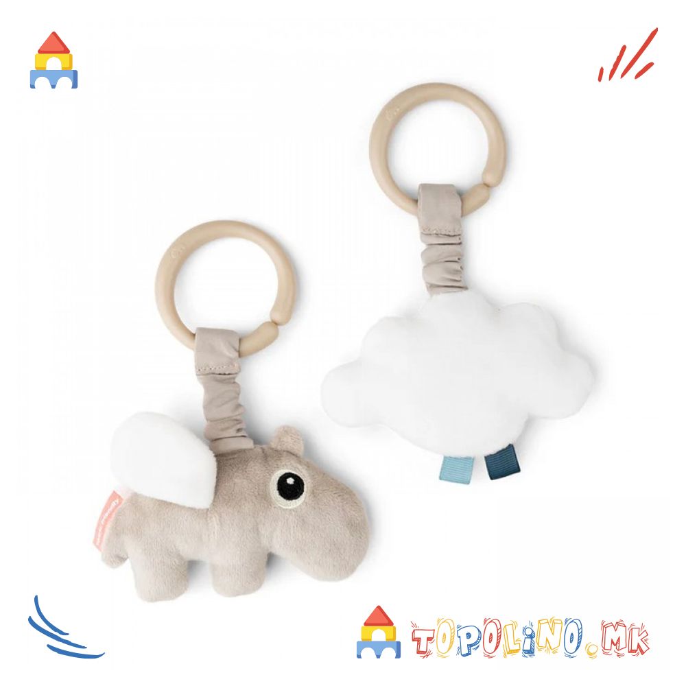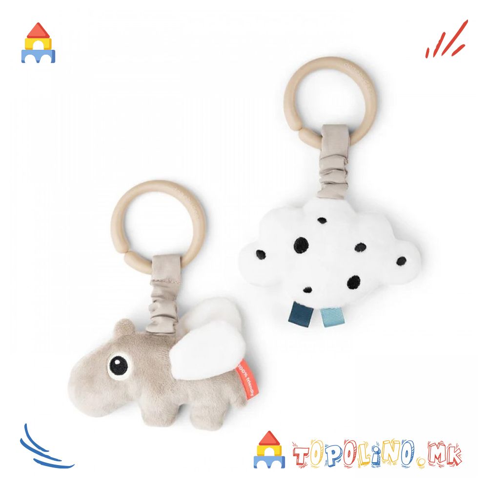 Висечките играчки со Happy Clouds се совршен додаток за игра и забава во движење. Лесно се прикачуваат на количка, креветче.
