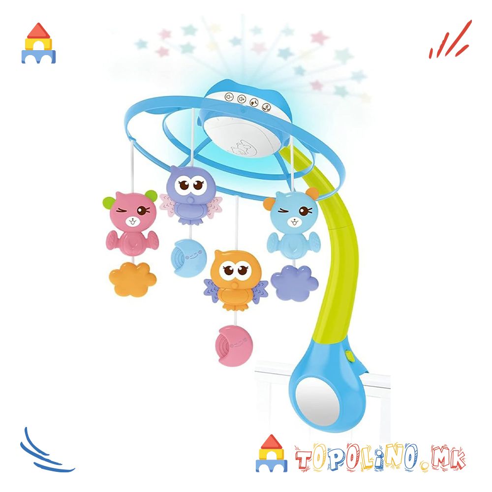 Ротира 360 степени, го придружува и смирува бебето во текот на ноќта.